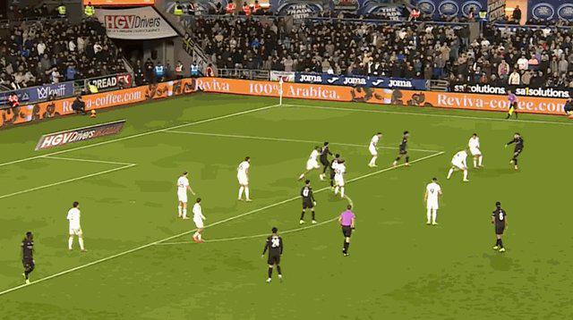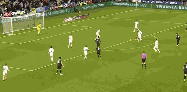 第12分鐘,貢薩洛·弗蘭科在禁區弧頂處迎球推射,皮球劃出美妙的弧線飛入球門死角。斯旺西1比0領先曼城。