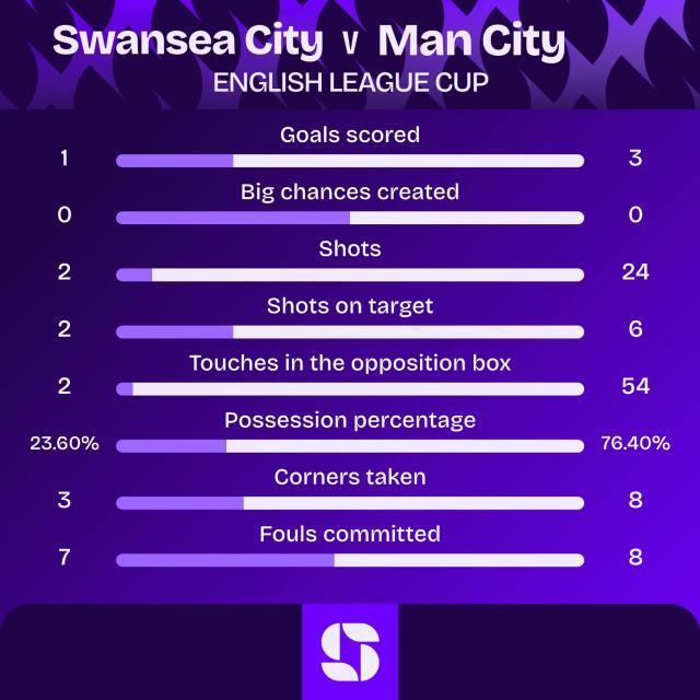 英格蘭聯賽杯第4輪,曼城客場挑戰英冠球隊斯旺西。斯旺西開場先拔頭籌,多庫扳平比分。下半場馬爾穆什、謝爾基進球,幫助曼城3比1完成逆轉,挺進聯賽杯8強,下一輪將主場迎戰布倫特福德。