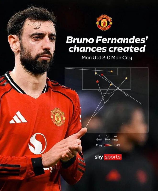 天空體育:B費成為第一位在英超聯賽面對瓜迪奧拉的曼城時創造4次重大機會的球員。